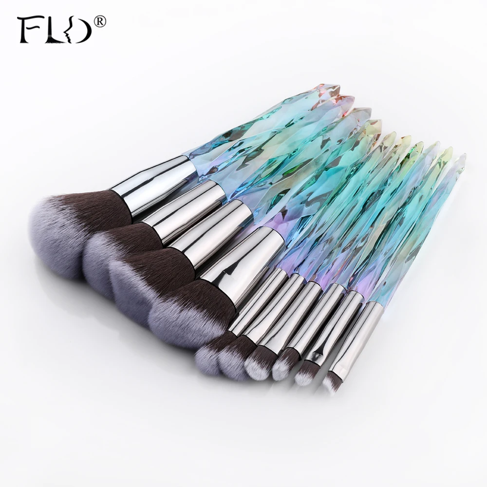 FLD 10Pcs Diamond makeup brushes Set Cosmetic Blush brush Powder Foundation Brush Eye Shadow Lip Ey