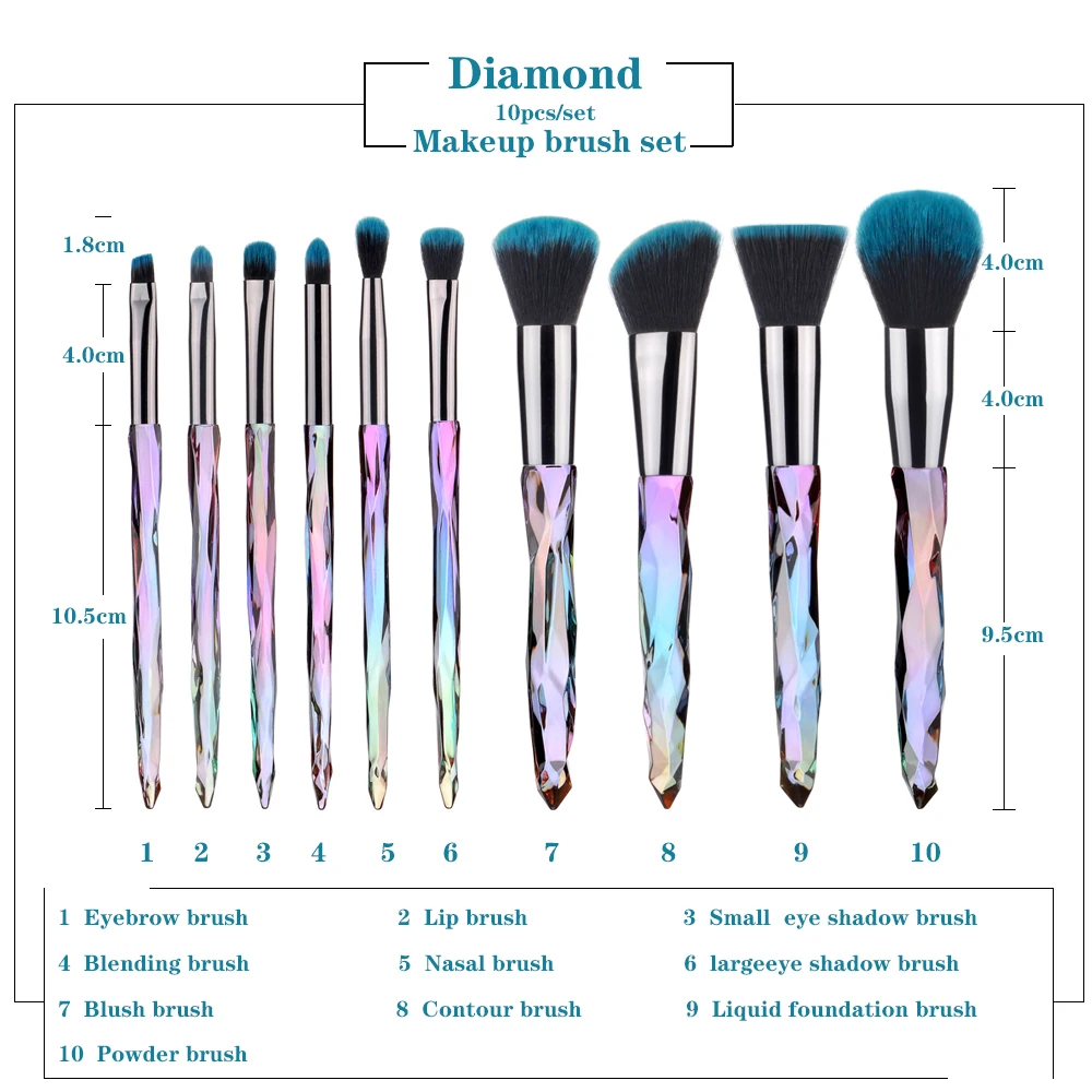 BEST FLD 10Pcs Diamond makeup brushes Set Cosmetic Blush brush Powder Foundation Brush Eye Shadow Lip Ey