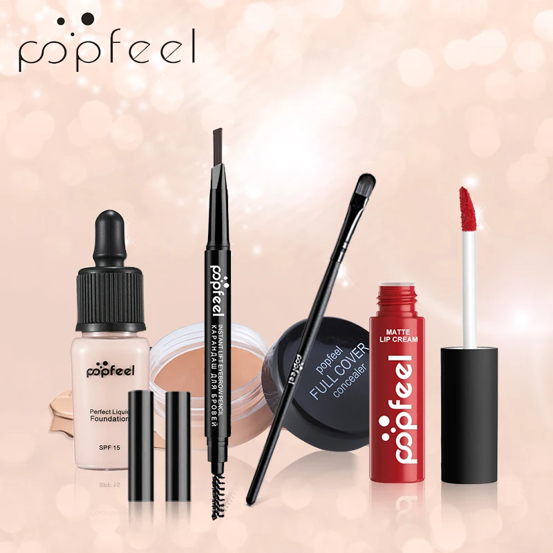 Best Seller POPFEEL 5 Pcs Face Makeup Set Concealer Hide Blemish+24 Hours Lasting Foundation Base+Matte Lipglos