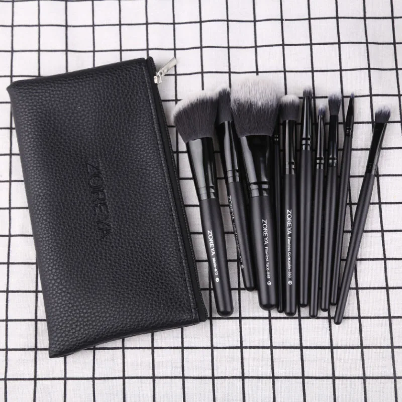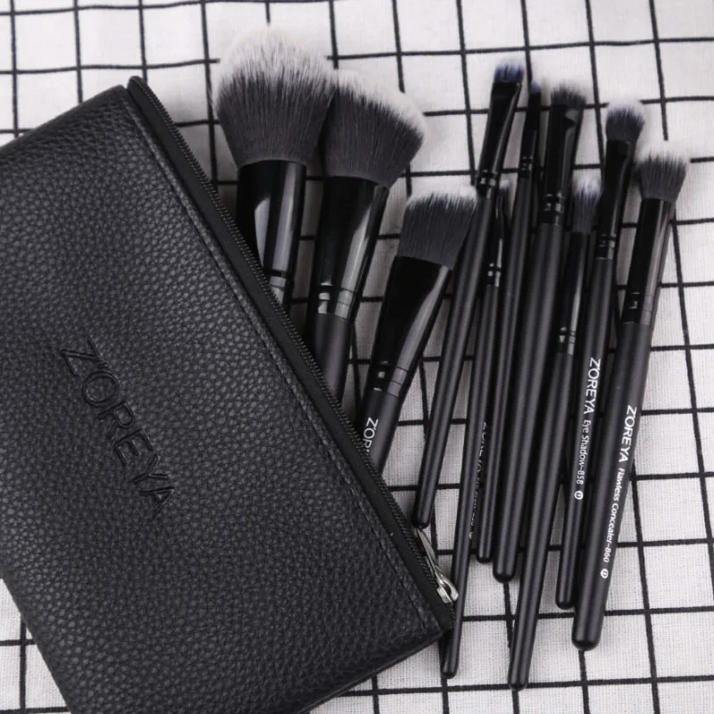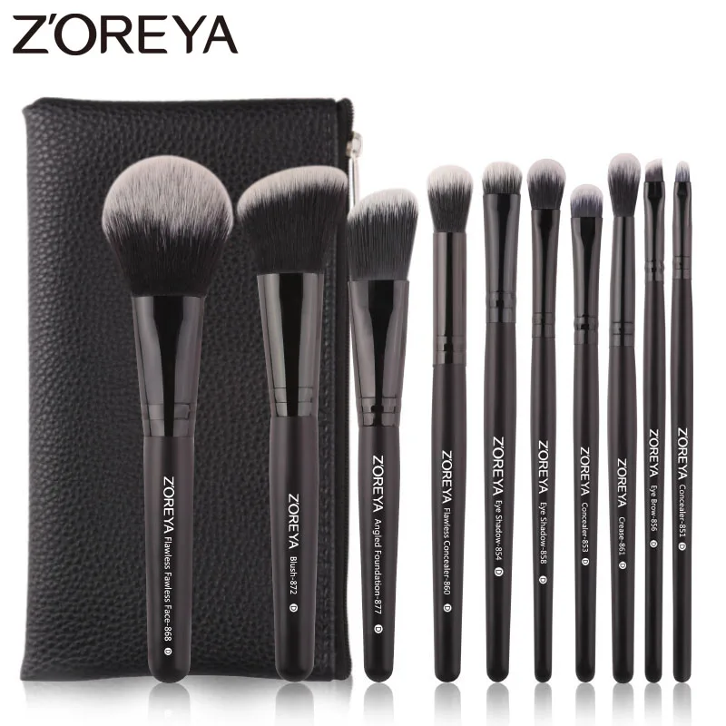 HIGH QUALITY Zoreya Brand Black Makeup Brushes 10pcs Synthetic Fibers Cosmetic Kit Crease Eye Brow Blush Powder