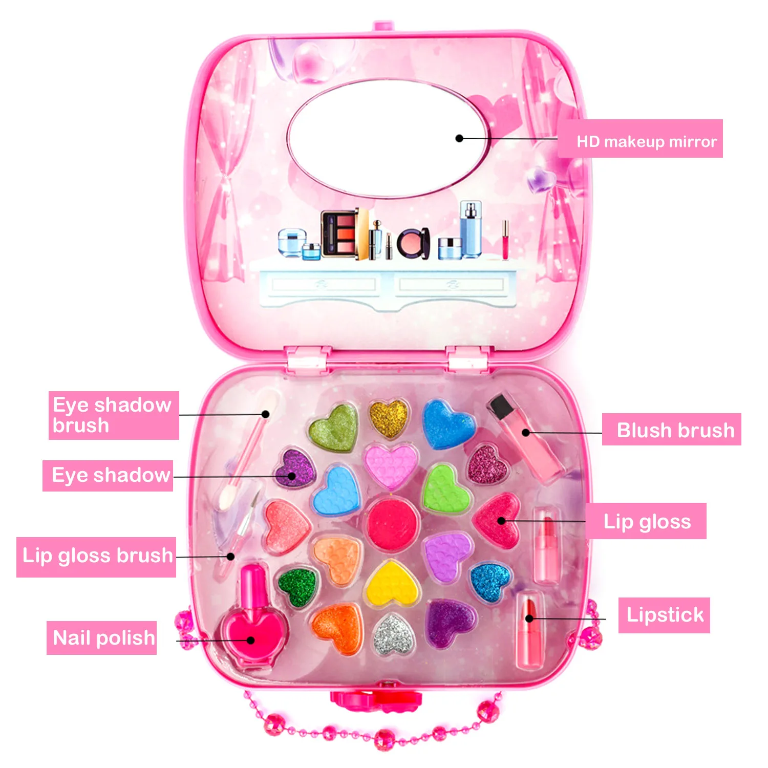 Kids Children Girls Makeup Cosmetic Pretend Play Toys Kit with Handbag Box for Birthday Christmas N