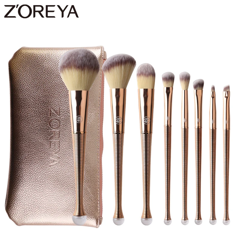 Zoreya Brand 8Pcs Rose Gold Makeup Brushes Mermaid Synthetic Hair Cosmetic Set Concealer Powder Ble